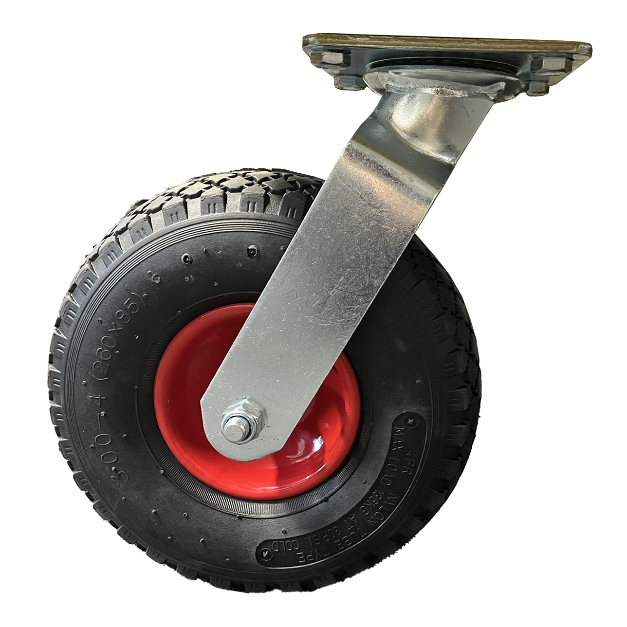 Drejelig gaffel med luftgummihjul 3.00x4. Stålfælg m. rulleleje