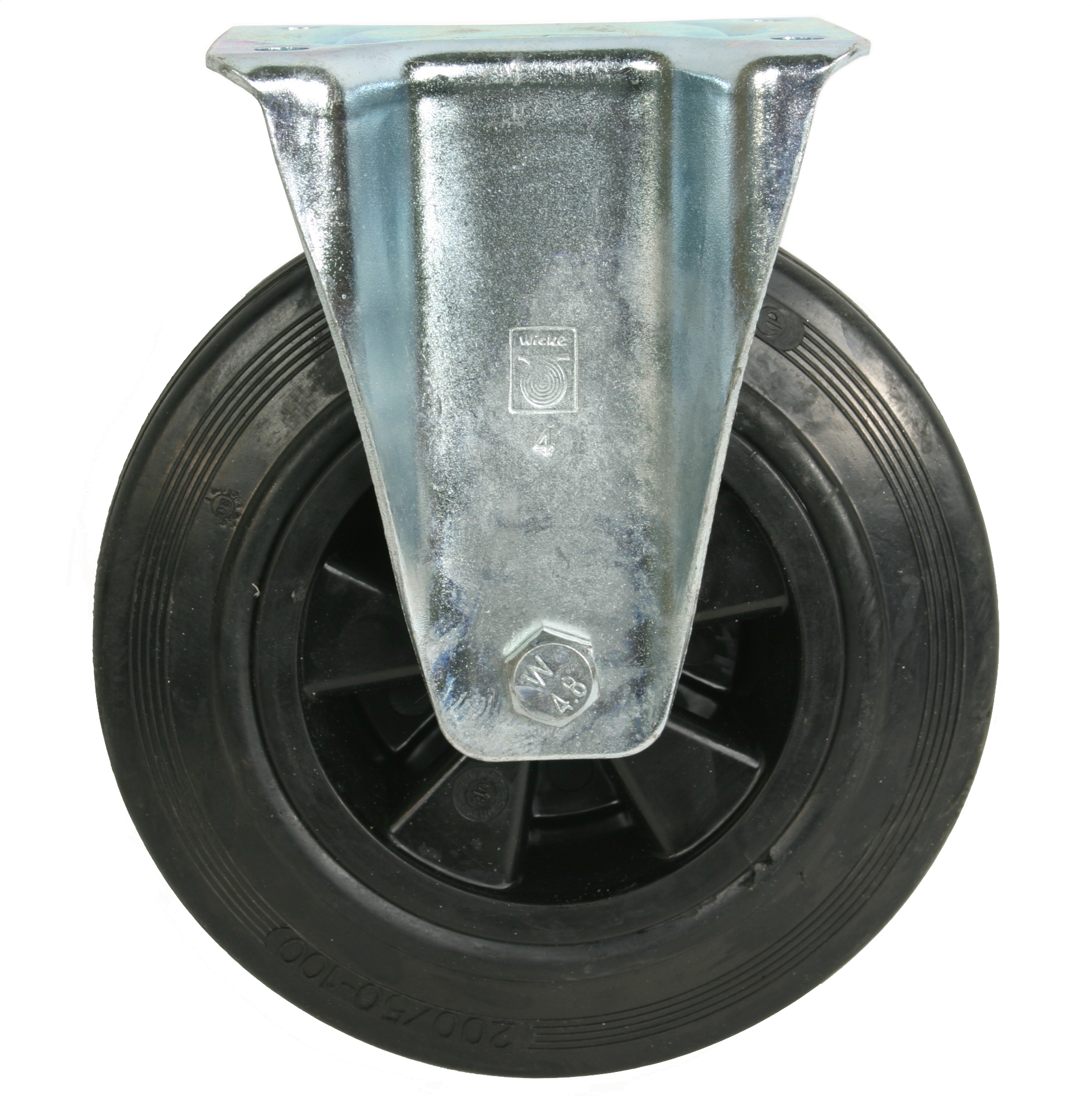Fast gaffel med massiv hjul 200x50. Plastfælg m. glideleje