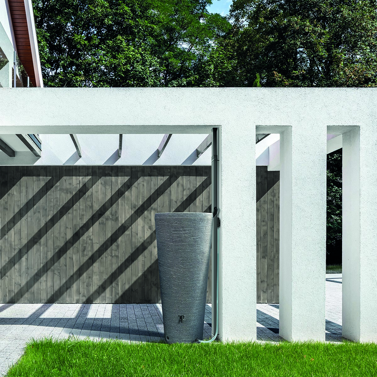 Funktionel regnvandstønde, der kan rumme 320 liter. Produceret i vejrbestandigt materiale. Udstyret med toplåg og hanesæt. Det anbefales at tømme regnvandstønden om vinteren.